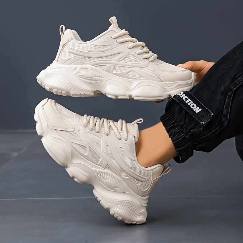 Classic Design of Beige Thick Soled Casual Sports Shoes